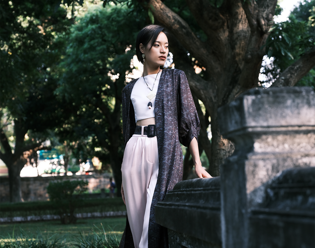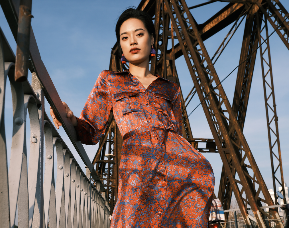 Our silk fabrics are locally produced in Vietnam by skillful artisans where even the all-over patterns are hand screen printed before arriving at our own manufacture workshop where each sewer assembles one garment from A to Z under comfortable and fair conditions.